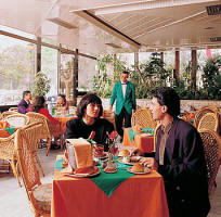 Restaurant overlooking the gardens of the Baron Palace with a selection
