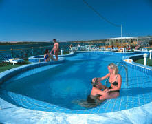 evening, large swimming pools, Jacuzzis, sun decks, a variety of bars